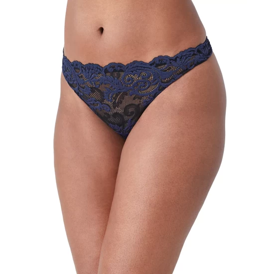 Romantic scroll lace glides over your curves to give you a beautiful, feminine look with this sleek thong from Wacoal. Style #842322